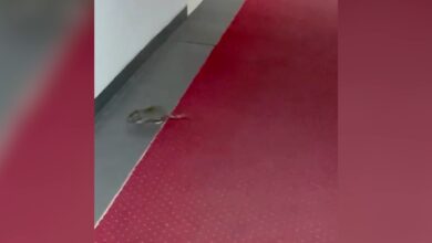 Șobolan filmat în timp ce „defila” pe covorul roșu din clădirea Ministerului Economiei, aflată în Sectorul 1